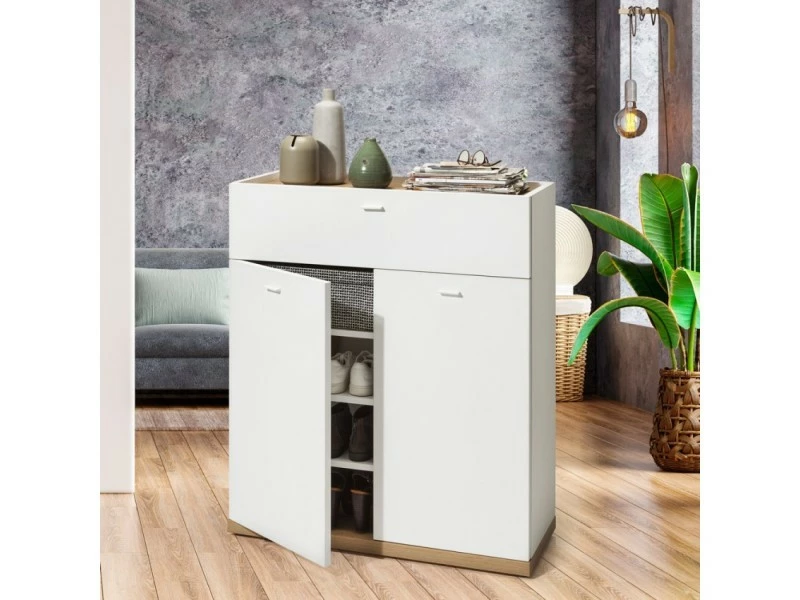 Ce meuble Ă chaussures est une solution 100% Made in Italy conçue pour tous ceux qui ont beaucoup de chaussures Ă commander chez eux. Spacieux au bon endroit, moderne et soignĂ© dans les dĂ©tails, le meuble Ă chaussures est particulièrement fonctionnel pour plusieurs endroits de la maison. Grâce Ă sa ligne Ă©purĂ©e et compacte, il est parfait pour ĂŞtre placĂ© Ă l’entrĂ©e mais s’adapte Ă©galement très bien aux autres espaces de vie, du salon Ă la chambre en passant par le couloir, offrant une organisation toujours ordonnĂ©e des chaussures pour toute la famille sans s’encombrer. Derrière les deux portes battantes, l’armoire Ă chaussures offre quatre compartiments pour accueillir jusqu’Ă 16 paires de chaussures de tailles et de tailles diffĂ©rentes, afin de les avoir toujours Ă portĂ©e de main, tandis que dans le tiroir coulissant, il est possible de ranger les accessoires pour nettoyer les chaussures , ainsi que les objets que l’on utilise le plus souvent Ă la maison ou ceux qui ne trouvent jamais d’emplacement fixe. La structure est Ă©lĂ©gante, solide et durable, fabriquĂ©e avec du bois de premier choix certifiĂ© FSC et possède une surface recouverte d’une couche de mĂ©lamine qui garantit sa longue durĂ©e dans le temps, ainsi qu’une excellente rĂ©sistance Ă l’usage quotidien, aux chocs et aux rayures. Grâce Ă la combinaison de couleurs douces et naturelles, vous pouvez combiner ce meuble Ă chaussures avec n’importe quel style de mobilier et le placer lĂ oĂą vous en avez le plus besoin dans la maison pour commander les accessoires et les chaussures de tous les membres de la famille et ainsi faire les chambres tout de suite plus accueillantes. ProduceShop sĂ©lectionne uniquement les meilleurs produits pour chaque catĂ©gorie en fonction de caractĂ©ristiques qualitatives et esthĂ©tiques dans le but de ne distribuer sur le marchĂ© que des articles qui satisfont pleinement les besoins de ses clients. CaractĂ©ristiques techniques : Dimensions : 89,3 x 35,3 x 105,5 cm (largeur, profondeur, hauteur) Produit et design de qualitĂ© 100% Made in Italy MatĂ©riau en bois mĂ©laminĂ© certifiĂ© FSC Surface lisse avec revĂŞtement en mĂ©lamine haute rĂ©sistance CapacitĂ© totale : 16 paires de chaussures 2 sections de rangement avec 4 compartiments chacune et ouverture Ă charnière Tiroir coulissant pour ranger divers objets pour chaque besoin Charnières mĂ©talliques robustes Design moderne qui peut ĂŞtre combinĂ© avec tout type d’intĂ©rieur Étagère Ă chaussures dĂ©corative et fonctionnelle pour plusieurs environnements IdĂ©al pour le hall, la chambre, le salon et d’autres espaces Assemblage simple et rapide, une seule personne suffit Instructions simples et dĂ©taillĂ©es Couleur : blanc mat et chĂŞne N.B. : La livraison peut prendre environ 3 jours ouvrĂ©s.