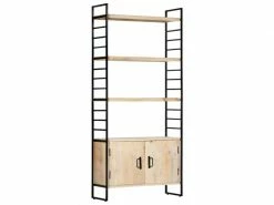 ICAVERNE Magnifique Étagères edition Vientiane Bibliothèque Ă 4 niveaux 80x30x180 cm Bois de manguier massif Ajoutez une touche de style industriel Ă votre maison ou bureau avec notre bibliothèque Ă 4 niveaux. Cette bibliothèque avec 3 Ă©tagères et 2 portes offre une solution idĂ©ale pour stocker et afficher votre collection de livres, magazines, documents ou objets dĂ©coratifs tels que des cadres photo et des objets de collection. La bibliothèque est dotĂ©e d’un cadre robuste en fer enduit de poudre qui lui donne un aspect industriel. Les Ă©tagères rĂ©tro sont en bois de manguier massif, extrĂŞmement stable et durable. Le bois de manguier est un bois dur dense et robuste qui prĂ©sente de belles stries et contours bruns ou dorĂ©s Ă sa surface. Chaque Ă©tape du processus est rĂ©alisĂ©e avec le plus grand soin, que ce soit le polissage, la peinture ou le laquage. Les couleurs et les grains du bois peuvent varier d’une pièce Ă l’autre, ce qui rend chaque pièce unique et lĂ©gèrement diffĂ©rente l’une de l’autre. La livraison est alĂ©atoire. MatĂ©riau : bois de manguier massif et cadre en fer enduit de poudre Dimensions : 80 x 30 x 180 cm (l x P x H) Surface polie, peinte et laquĂ©e Avec 2 portes et 3 Ă©tagères
