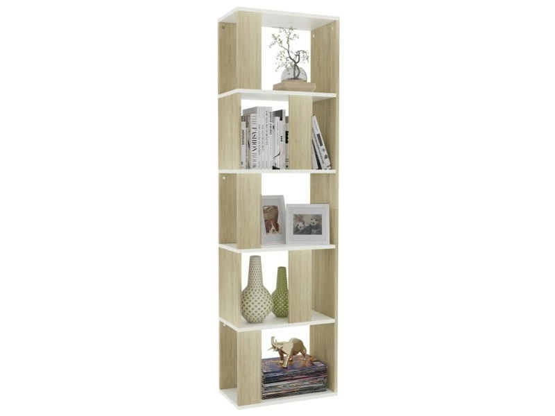 ICAVERNE Magnifique Étagères gamme Sofia Bibliothèque/SĂ©parateur de pièce Blanc chĂŞne sonoma 45x24x159cm DotĂ©e d’un design Ă©lĂ©gant et classique, cette bibliothèque ajoutera une touche dĂ©corative et pratique Ă votre dĂ©coration. Le meuble est fabriquĂ© en carton de qualitĂ©, ce qui lui assure soliditĂ©, durabilitĂ© et longĂ©vitĂ©. Conçue avec 5 compartiments spacieux , la bibliothèque offre un grand espace de rangement pour ranger et tenir Ă portĂ©e de main vos magazines, livres, DVD, appareils multimĂ©dias et autres objets de dĂ©coration. En outre, car elle est une Ă©tagère polyvalente, elle peut Ă©galement servir de sĂ©parateur de pièce, ce qui en fait le choix idĂ©al pour votre couloir et tout autre espace de vie. L’Ă©tagère Ă livres est facile Ă nettoyer avec un chiffon humide. Cette bibliothèque est facile Ă assembler avec des matĂ©riaux de montage inclus. Couleur : Blanc et chĂŞne sonoma MatĂ©riau : agglomĂ©rĂ© Dimensions : 45 x 24 x 159 cm (l x P x H) Avec 5 grands compartiments Également utilisable comme sĂ©parateur de pièce MatĂ©riaux de montage inclus