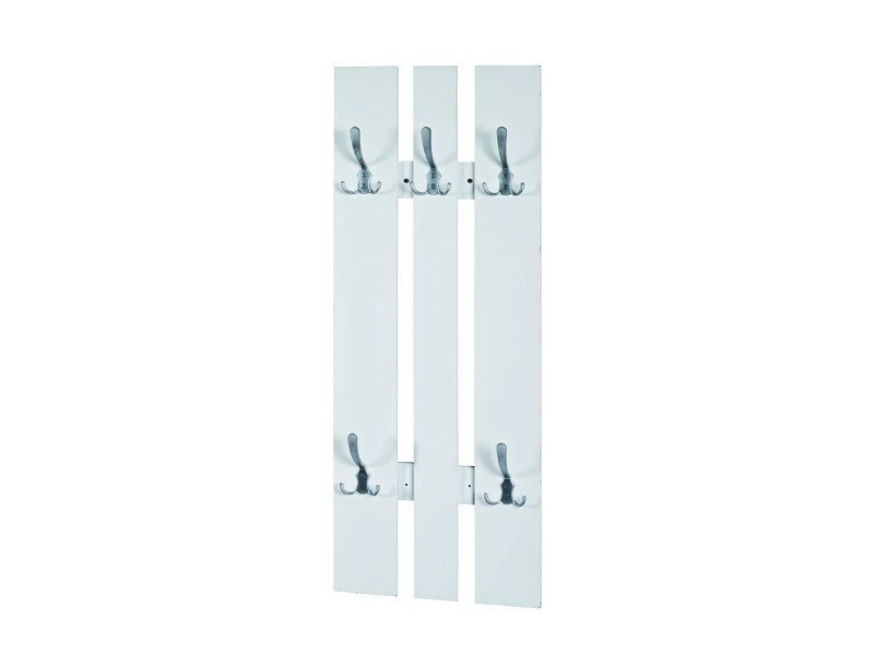 Magnifique NUANCEMEUBLE garderobe murale Lilongwe blanc-optique inox L40 x P9 x H100 cm MDF laqué blanc avec 5 crochets en optique inox 4.2kg