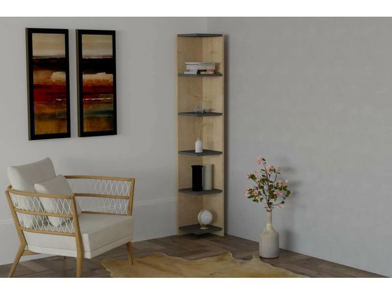 Offrez une ambiance conviviale à votre intérieur avec notre bibliothèque ouverte Igora. Elle est parfaite pour les livres, les photos et les œuvres d art. Igora est adaptée aux salons, aux espaces de travail et même aux chambres à coucher. L étagère d angle permet d utiliser parfaitement l espace dans les coins de la pièce. Les différents objets de la maison trouveront une nouvelle place sur les 5 niveaux de rangement. Utilisez l étagère d angle pour les bouquins, les DVD, les plantes et les objets de décoration dans votre salon, ou même comme support pratique dans le couloir et la cuisine.