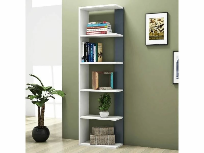 Vous avez tout simplement besoin d un coin pour ranger vos beaux livres d art et vos magazines ? Cette bibliothèque contemporaine Olympia est le choix idéal ! Discrète et élégante, cette bibliothèque apporte un style chic et un rangement pratique à votre maison. Sa forme asymétrique lui confère un attrait original. Ses cinq étagères ouvertes offrent beaucoup d espace. Placez la dans le coin de votre bureau pour ranger vos livres préférés. Si vous voulez mettre un peu de piquant, utilisez l étagère supérieure pour y placer des photos de famille et une petite plante verte.