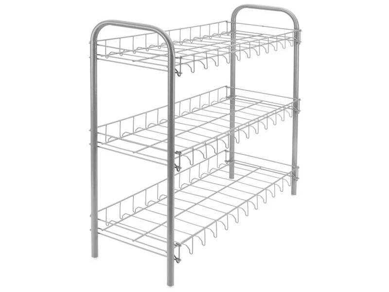 Le Shoe 3 de la marque Metaltex est une Ă©tagère Ă chaussures pratique Ă 3 niveaux oĂą vous pouvez facilement placer 9 paires de chaussures. Son système ingĂ©nieux permet un assemblage rapide de l’organisateur de chaussures sans outils ! Le porte-chaussures est en acier avec un revĂŞtement PEBD (polyĂ©thylène basse densitĂ©), qui est un revĂŞtement souple, rĂ©sistant et standard mondial pour les produits en fil de fer/d’acier. Grâce Ă sa taille compacte, l’organisateur de chaussures peut ĂŞtre placĂ© dans un coin discret. Le Shoe 3 de la marque Metaltex est un porte-chaussures idĂ©al pour les petits espaces.