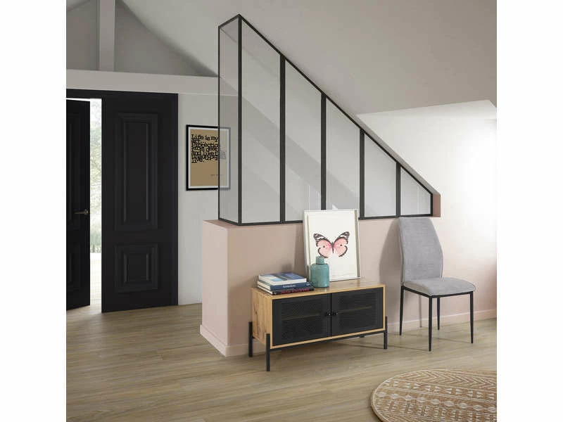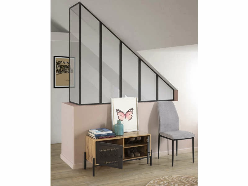 | Matière | Panneaux de particules revêtus de papier décor couleur chêne et métal |