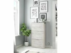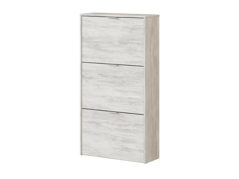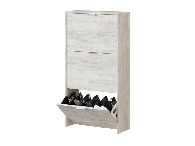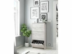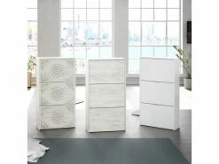 Meuble à chaussures à trois volets, blanc – Range-chaussures pratique, très polyvalent car il peut être placé dans n’importe quelle pièce de la maison, de la salle de bain au placard, à l’entrée ou sur le balcon. Les trois compartiments spacieux se déplient, avec des guides métalliques. Il peut contenir jusqu’à 18 paires de chaussures – Son design aux lignes simples permet un placement facile sans envahir l’espace qui l’abrite. Entièrement fabriqué en stratifié, il est étanche, résistant aux chocs et aux rayures et est durable dans le temps. Dimensions en cm : 60 x 113 x 22