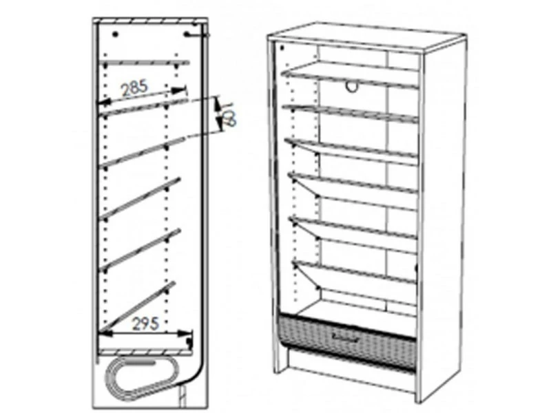 – 6 tablettes rĂ©glables et inclinables => possibilitĂ© de mettre des grandes tailles et des bottes