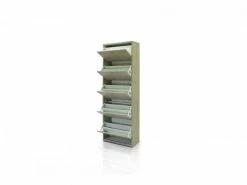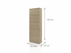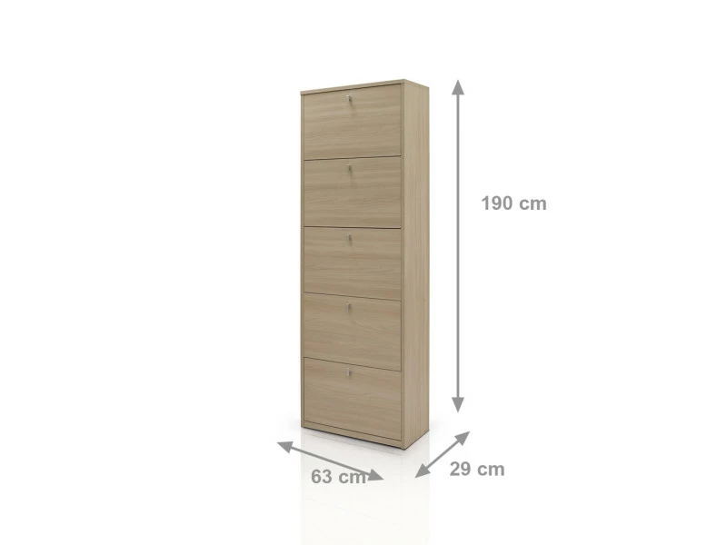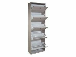 Le meuble Ă chaussures avec structure en bois Ă cinq portes battantes s’avère ĂŞtre une solution pratique et peu encombrante – Grâce Ă l’Ă©paisseur rĂ©duite, il est facile Ă placer dans n’importe quel environnement, entrĂ©e, chambre, dressing, mais aussi salle de bain, vĂ©randa ou derrière un porte. Meuble Ă chaussures avec structure en bois avec 5 portes abattantes. Sa capacitĂ© est d’environ 30 paires de chaussures. FabriquĂ© en bois avec une finition blanc mat. Mesure 63 x 190 x 29 cm