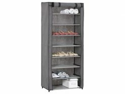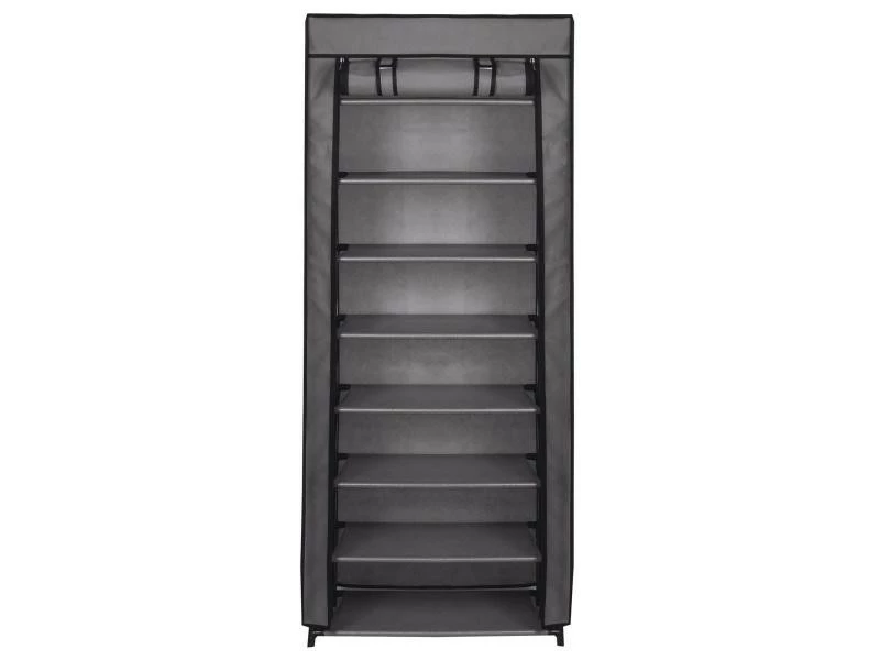 – L’armoire Ă chaussures se compose de 8 tablettes et d’une toile en tissu non-tissĂ©. La housse laisse passer l’air mais pas la poussière.