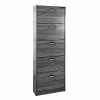Meuble à chaussures gris moderne avec 4 rabats minces 63x24x150cm Livré en kit à installer Matière : bois mélaminé