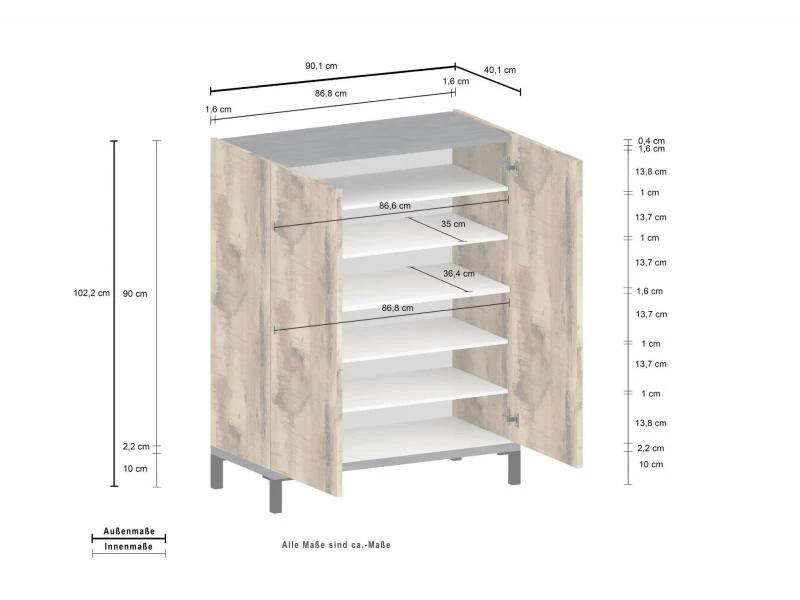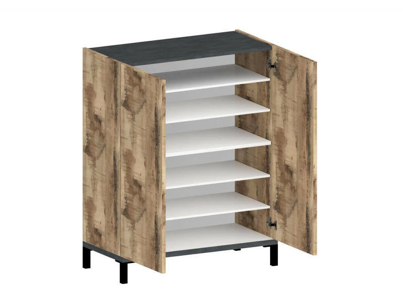 ARMOIRE À CHAUSSURES MODERNE: Meuble à chaussures moderne avec deux portes battantes, la structure est de couleur ardoise et érable – Fonctionnel et innovant, parfait pour meubler des espaces nécessitant de l’espace avec un seul modèle élégant et fonctionnel. STRUCTURE ET UTILISATION: Pratique et élégant, c’est la solution parfaite si placé dans un environnement moderne, il est très spacieux grâce à la structure à deux portes battantes – À l’intérieur, les portes battantes ont cinq étagères où jusqu’à 15 paires de chaussures peuvent être stockées – Portes équipées de charnières métalliques solides et durables, système d’ouverture push-pull. PRATIQUE ET INNOVANT: Son design moderne et élégant rend ce produit parfait pour être placé dans un environnement moderne et lumineux: c’est le produit idéal pour ceux qui recherchent un meuble fonctionnel et peu encombrant pour leur maison – La coloration de l’article est très moderne et en même temps il s’adapte facilement à tout type d’environnement. 100% MADE IN ITALY: La production 100% italienne garantit fiabilité, résistance, confort et durabilité dans le temps l’attention portée aux processus de production, le choix des matières premières de qualité et le souci du détail font de ce produit une fabrication noble. CARACTÉRISTIQUES TECHNIQUES: Entièrement construit en stratifié 16 mm certifié FSC (embase 22 mm), il résiste aux chocs et aux rayures, et est durable dans le temps – Nettoyage rapide et facile grâce au matériau qui le compose – Livré démonté avec kit et livret d’instructions de montage – Soin du détail et attention à l’emballage, résistant et adapté au transport – Dimensions en cm: 90x40h102