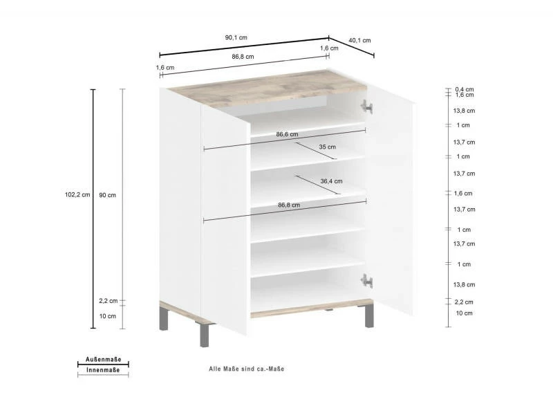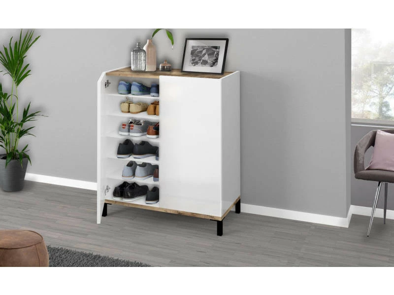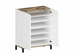 ARMOIRE À CHAUSSURES MODERNE: Meuble à chaussures moderne avec deux portes battantes, la structure est en blanc brillant et érable – Fonctionnel et innovant, parfait pour décorer des environnements avec des besoins d’espace avec un seul modèle élégant et fonctionnel. STRUCTURE ET UTILISATION: Pratique et élégant, c’est la solution parfaite si placé dans un environnement moderne, il est très spacieux grâce à la structure à deux portes battantes – À l’intérieur, les portes battantes ont cinq étagères où jusqu’à 15 paires de chaussures peuvent être stockées – Portes équipées de charnières métalliques solides et durables, système d’ouverture push-pull. PRATIQUE ET INNOVANT: Son design moderne et élégant rend ce produit parfait pour être placé dans un environnement moderne et lumineux: c’est le produit idéal pour ceux qui recherchent un meuble fonctionnel et peu encombrant pour leur maison – La coloration de l’article est très moderne et en même temps il s’adapte facilement à tout type d’environnement. 100% MADE IN ITALY: La production 100% italienne garantit fiabilité, résistance, confort et durabilité dans le temps l’attention portée aux processus de production, le choix des matières premières de qualité et le souci du détail font de ce produit une fabrication noble. CARACTÉRISTIQUES TECHNIQUES: Entièrement construit en stratifié 16 mm certifié FSC (embase 22 mm), il résiste aux chocs et aux rayures, et est durable dans le temps – Nettoyage rapide et facile grâce au matériau qui le compose – Livré démonté avec kit et livret d’instructions de montage – Soin du détail et attention à l’emballage, résistant et adapté au transport – Dimensions en cm: 90x40h102