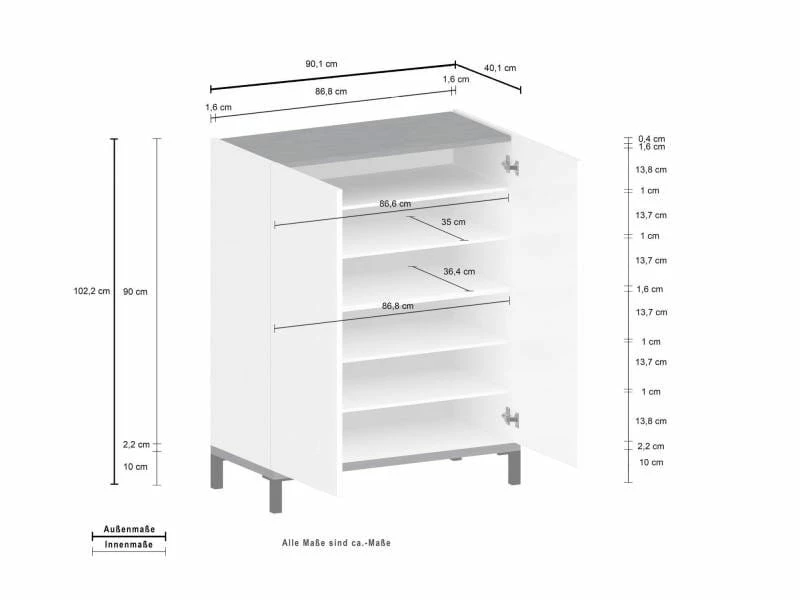 ARMOIRE À CHAUSSURES MODERNE: Meuble à chaussures moderne avec deux portes battantes, la structure est en blanc brillant et ardoise – Fonctionnel et innovant, parfait pour meubler des espaces avec des besoins d’espace avec un seul modèle élégant et fonctionnel. STRUCTURE ET UTILISATION: Pratique et élégant, c’est la solution parfaite si placé dans un environnement moderne, il est très spacieux grâce à la structure à deux portes battantes – À l’intérieur, les portes battantes ont cinq étagères où jusqu’à 15 paires de chaussures peuvent être stockées – Portes équipées de charnières métalliques solides et durables, système d’ouverture push-pull. PRATIQUE ET INNOVANT: Son design moderne et élégant rend ce produit parfait pour être placé dans un environnement moderne et lumineux: c’est le produit idéal pour ceux qui recherchent un meuble fonctionnel et peu encombrant pour leur maison – La coloration de l’article est très moderne et en même temps il s’adapte facilement à tout type d’environnement. 100% MADE IN ITALY: La production 100% italienne garantit fiabilité, résistance, confort et durabilité dans le temps l’attention portée aux processus de production, le choix des matières premières de qualité et le souci du détail font de ce produit une fabrication noble. CARACTÉRISTIQUES TECHNIQUES: Entièrement construit en stratifié 16 mm certifié FSC (embase 22 mm), il résiste aux chocs et aux rayures, et est durable dans le temps – Nettoyage rapide et facile grâce au matériau qui le compose – Livré démonté avec kit et livret d’instructions de montage – Soin du détail et attention à l’emballage, résistant et adapté au transport – Dimensions en cm: 90x40h102