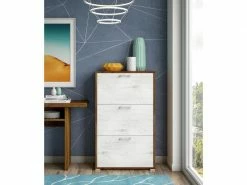 SHOE RACK – meuble à chaussures pratique avec 3 conteneurs à rabat à double profondeur, parfait pour chaque pièce de votre maison, il s’adapte à tous les besoins personnels, couleur chêne et portes blanc canyon. STRUCTURE ET UTILISATION – Armoire classique parfaite pour ranger soigneusement vos chaussures, elle peut être placée dans le placard, à l’entrée ou comme meuble dans la chambre – Équipée de 3 portes à rabat pouvant contenir confortablement jusqu’à 18 paires de chaussures grâce à sa double profondeur. PRATIQUE ET INNOVANT – Structure aux lignes classiques, il peut être positionné dans n’importe quel coin de la maison grâce à sa petite taille, équipé de poignées pratiques pour faciliter l’ouverture – Pratique gain de place. 100% MADE IN ITALY – La production 100% italienne garantit fiabilité, résistance, confort et durabilité dans le temps l’attention portée aux processus de production, le choix de matières premières de qualité et le souci du détail font de ce produit une fabrication noble. CARACTÉRISTIQUES TECHNIQUES – Entièrement construit en panneau mélaminé thermostructuré E1, plateaux en matière plastique, il résiste aux chocs et aux rayures, et est durable dans le temps – Nettoyage facile et rapide grâce au matériau qui le compose – Livré démonté avec kit et livret d’instructions assemblage – Soin et attention particulière aux emballages, résistants et adaptés au transport – Bois certifié FSC, l’épaisseur de 18 mm garantit une haute résistance des matériaux, un rendement esthétique élevé grâce à la finition très haute définition – Dimensions en cm – 67x28x112