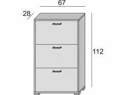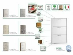 SHOE RACK – meuble à chaussures pratique avec 3 conteneurs à rabat à double profondeur, parfait pour chaque pièce de votre maison, il s’adapte à tous les besoins personnels, couleur orme. STRUCTURE ET UTILISATION – Armoire classique parfaite pour ranger soigneusement vos chaussures, elle peut être placée dans le placard, à l’entrée ou comme meuble dans la chambre – Équipée de 3 portes à rabat pouvant contenir confortablement jusqu’à 18 paires de chaussures grâce à sa double profondeur. PRATIQUE ET INNOVANT – Structure aux lignes classiques, il peut être positionné dans n’importe quel coin de la maison grâce à sa petite taille, équipé de poignées pratiques pour faciliter l’ouverture – Pratique gain de place. 100% MADE IN ITALY – La production 100% italienne garantit fiabilité, résistance, confort et durabilité dans le temps l’attention portée aux processus de production, le choix de matières premières de qualité et le souci du détail font de ce produit une fabrication noble. CARACTÉRISTIQUES TECHNIQUES – Entièrement construit en panneau mélaminé thermostructuré E1, plateaux en matière plastique, il résiste aux chocs et aux rayures, et est durable dans le temps – Nettoyage facile et rapide grâce au matériau qui le compose – Livré démonté avec kit et livret d’instructions assemblage – Soin et attention particulière aux emballages, résistants et adaptés au transport – Bois certifié FSC, l’épaisseur de 18 mm garantit une haute résistance des matériaux, un rendement esthétique élevé grâce à la finition très haute définition – Dimensions en cm – 67x28x112
