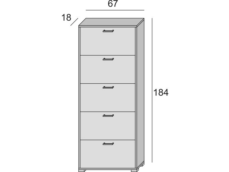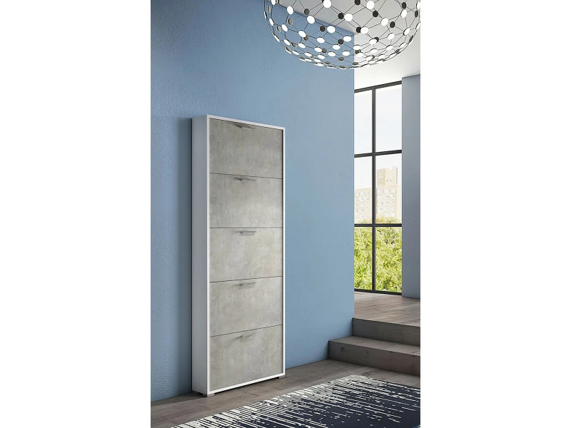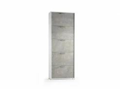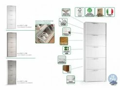 SHOE RACK – étagère à chaussures pratique avec 5 conteneurs à rabat, parfait pour n’importe quelle pièce de votre maison, il s’adapte à tous les besoins personnels, couleur blanche et portes en béton. STRUCTURE ET UTILISATION – Armoire classique parfaite pour ranger soigneusement vos chaussures, peut être placée dans le placard, à l’entrée ou comme meuble dans la chambre – Équipée de 5 portes à rabat pouvant contenir confortablement jusqu’à 15 paires de chaussures. PRATIQUE ET INNOVANT – Structure aux lignes classiques, il peut être positionné dans n’importe quel coin de la maison grâce à sa petite taille, équipé de poignées pratiques pour faciliter l’ouverture – Pratique gain de place. 100% MADE IN ITALY – La production 100% italienne garantit fiabilité, résistance, confort et durabilité dans le temps l’attention portée aux processus de production, le choix de matières premières de qualité et le souci du détail font de ce produit une fabrication noble. CARACTÉRISTIQUES TECHNIQUES – Entièrement construit en panneau mélaminé thermostructuré E1, plateaux en matière plastique, il résiste aux chocs et aux rayures, et est durable dans le temps – Nettoyage facile et rapide grâce au matériau qui le compose – Livré démonté avec kit et livret d’instructions assemblage – Soin et attention particulière aux emballages, résistants et adaptés au transport – Bois certifié FSC, l’épaisseur de 18 mm garantit une haute résistance des matériaux, un rendement esthétique élevé grâce à la finition très haute définition – Dimensions en cm – 67x18x184