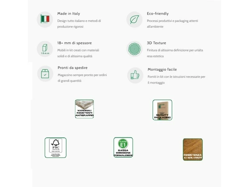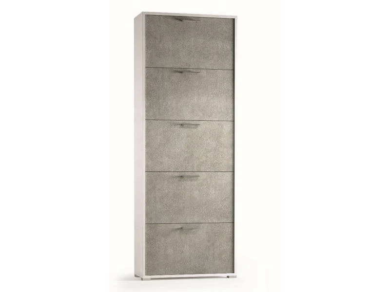 SHOE RACK – meuble à chaussures pratique avec 5 conteneurs à rabats à double profondeur, parfait pour chaque pièce de votre maison, il s’adapte à tous les besoins personnels, couleur blanche et portes couleur béton. STRUCTURE ET UTILISATION – Armoire classique parfaite pour ranger soigneusement vos chaussures, elle peut être placée dans le placard, à l’entrée ou comme meuble dans la chambre – Équipée de 4 portes à rabat pouvant contenir confortablement jusqu’à 30 paires de chaussures grâce à sa double profondeur. PRATIQUE ET INNOVANT – Structure aux lignes classiques, il peut être positionné dans n’importe quel coin de la maison grâce à sa petite taille, équipé de poignées pratiques pour faciliter l’ouverture – Pratique gain de place. 100% MADE IN ITALY – La production 100% italienne garantit fiabilité, résistance, confort et durabilité dans le temps l’attention portée aux processus de production, le choix de matières premières de qualité et le souci du détail font de ce produit une fabrication noble. CARACTÉRISTIQUES TECHNIQUES – Entièrement construit en panneau mélaminé thermostructuré E1, plateaux en matière plastique, il résiste aux chocs et aux rayures, et est durable dans le temps – Nettoyage facile et rapide grâce au matériau qui le compose – Livré démonté avec kit et livret d’instructions assemblage – Soin et attention particulière aux emballages, résistants et adaptés au transport – Bois certifié FSC, l’épaisseur de 18 mm garantit une haute résistance des matériaux, un rendement esthétique élevé grâce à la finition très haute définition – Dimensions en cm – 67x28x183