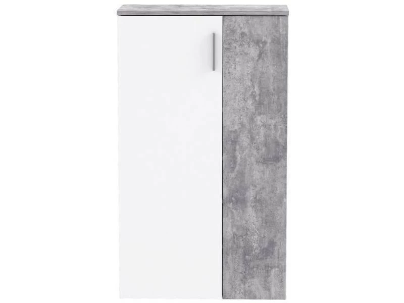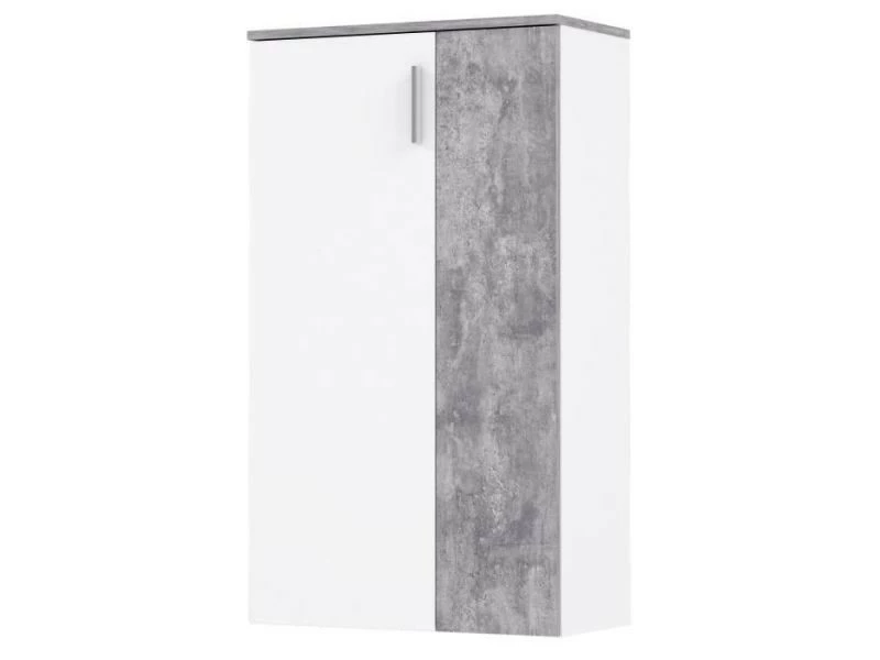 BOOTS Meuble a chaussures – Panneaux de particules blanc mat et effet bĂ©ton gris clair- Style et design contemporain – 2 portes amĂ©nagĂ©e avec 5 tablettes – Environ 18 paires de chaussure – Fabrication europĂ©enne – Dimensions totales L 68.9 x H 120.4 x P 34.1 cm.