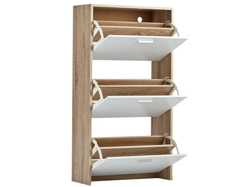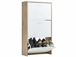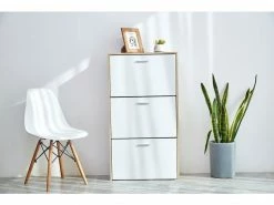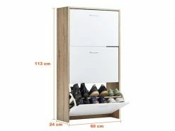 Mettez de l’ordre dans votre couloir ou votre entrée avec ce meuble à chaussures Scandinave pratique et moderne Ce meuble à chaussures moderne fonctionnel et élégant permet de ranger un grand nombre de chaussures. Pour familles nombreuses, jeunes couples et célibataire chacun des compartiments rabattables de l’armoire peut contenir deux rangées et accueillir jusqu’à 18 paires. Design Scandinave Ordonnez votre entrée avec ce meuble à chaussure blanc à bordure imitation hêtre. Ce meuble de style scandinave et naturel se fondera dans n’importe quelle décoration d’intérieur et donnera une touche chaleureuse. Le rangement de vos chaussures dans ce meuble donnera un look net à votre entrée ou séjour pour un esprit et une ambiance apaisé. Résiste à toute épreuve Notre meuble en fibre de bois offre une résistance supplémentaire à l’humidité et protège vos chaussures de la poussière. Installation Facile Le design a été simplifié et un manuel d’instructions est inclus pour vous aider à l’installation simple et rapide de votre meuble a chaussures. Nous proposons également un service clientèle disponible 24 heures sur 24 et 7 jours sur 7 au cas où vous auriez besoin d’une assistance supplémentaire. Caractéristiques: Peut contenir jusqu’à 18 paires/36 chaussures Matériel: Fibre de Bois Dimensions: 60 x 24 x 113 cm A monter soi-même – Manuel d’instruction et visserie fourni