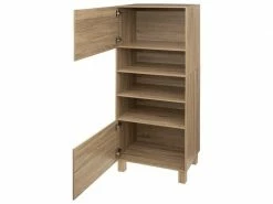 Découvrez ce très pratique meuble colonne 2 portes Mixup naturel couleur bois naturel qui prendra place dans votre salon au style contemporain moderne. Ce meuble de rangement avec 2 portes possède 5 compartiments de rangement, dont 2 avec porte.