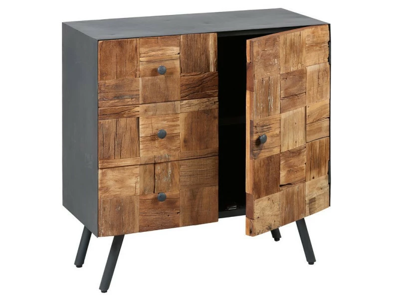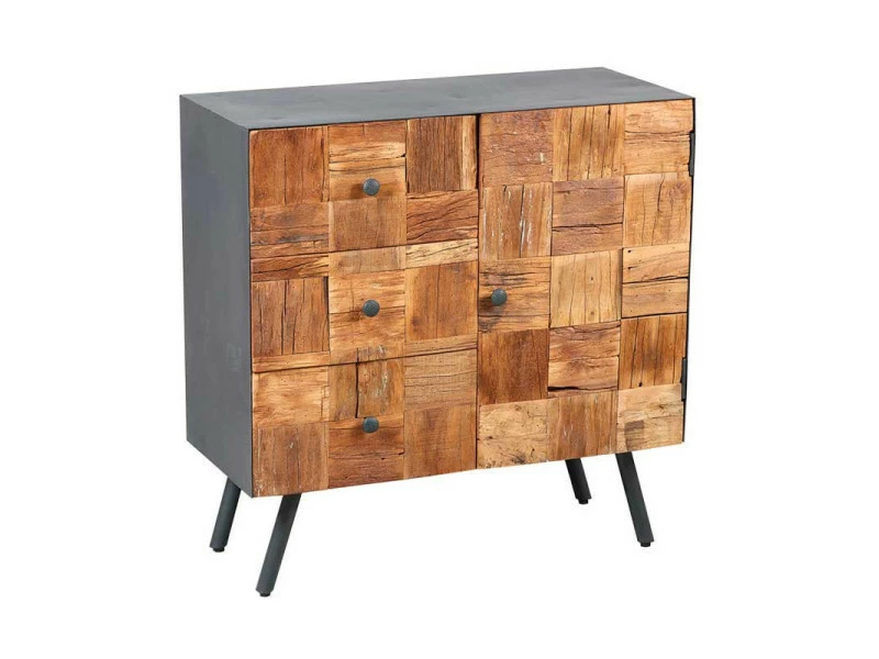 Finalisez la déco mobilier Industriel de votre entrée avec ce meuble d’entrée 1 porte 3 tiroirs au design exclusif.