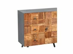 Ce meuble de complément à la dimension optimisée met en oeuvre du bois massif de Palissandre vieilli et une structure faite d’éléments en acier.