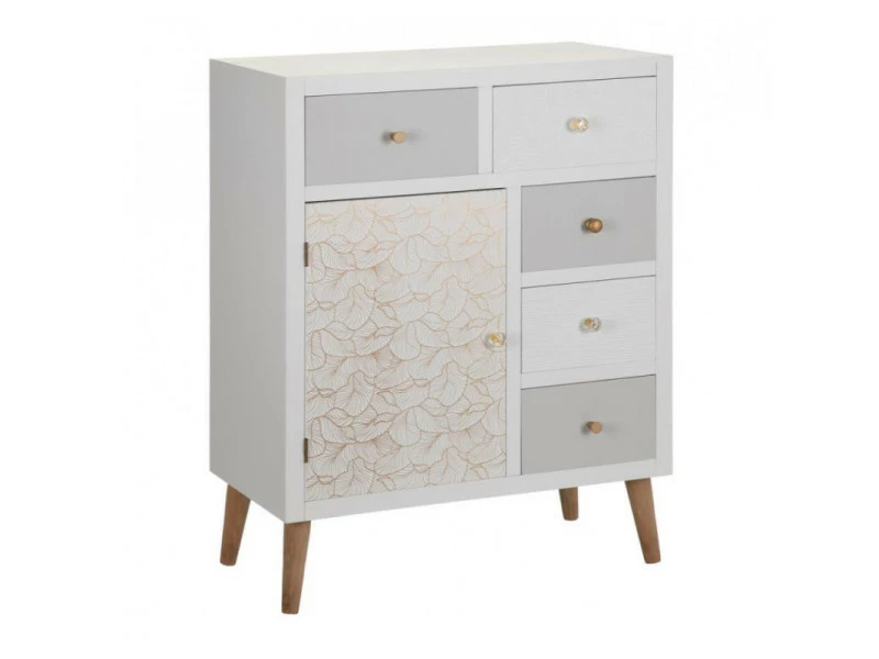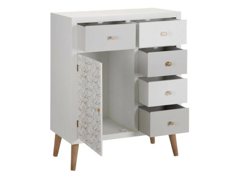 Mariage du mobilier design Scandinave et design ce meuble d’entrée 1 porte 5 tiroirs modernisera à coup sûr votre entrée ou votre salon.