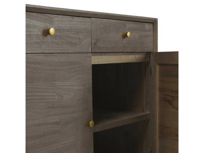 Look intemporel et belle qualité de réalisation pour ce meuble d’entrée 2 portes 2 tiroirs à la teinte Noyer clair chaleureuse et contemporaine.