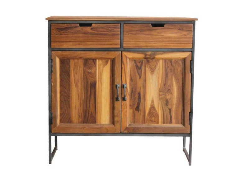 Design au goût du jour et très nettement inspiré du mobilier Industriel pour ce meuble d’entrée 2 portes 2 tiroirs bénéficiant d’une très belle qualité perçue.