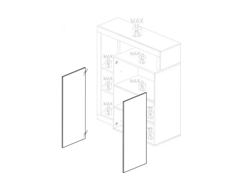 Vous pourrez déposer un grand nombre d’objets sur les 2 étagères porposées derrière les 2 portes, les niches ouvertes seront parfaites pour laisser quelques objets à portée de main ou pour mettre en avant de beaux objets de décoration.