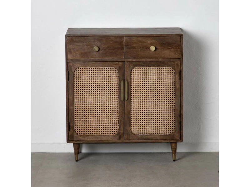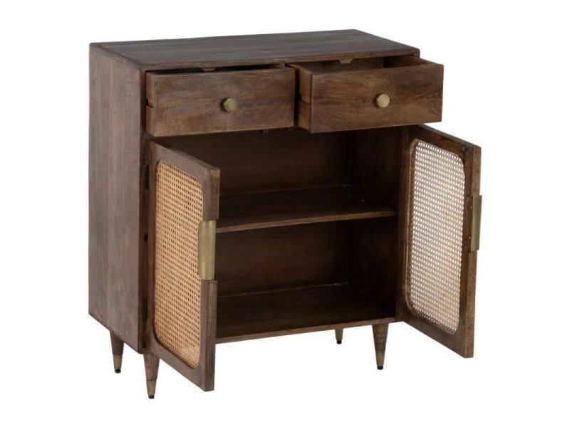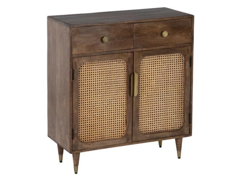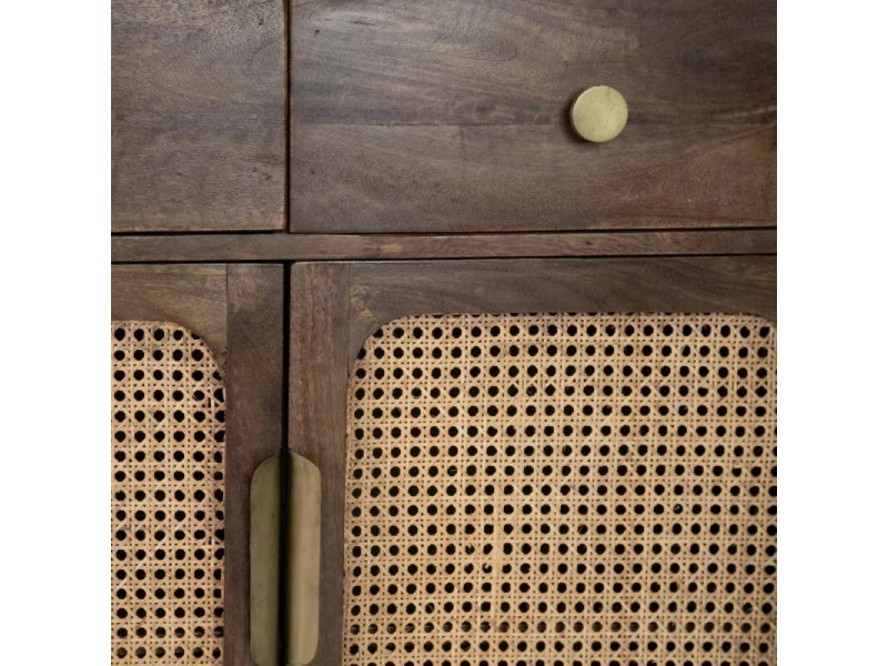 Totalement réalisé en bois de Manguier teinte brune ce meuble de complément à la proportion parfaite met en avant une façade tendue d’un cannage teinte naturelle pour une parfaite adéquation avec la tendance Vintage.