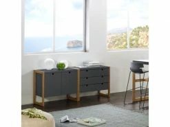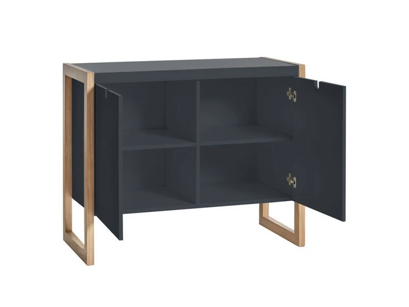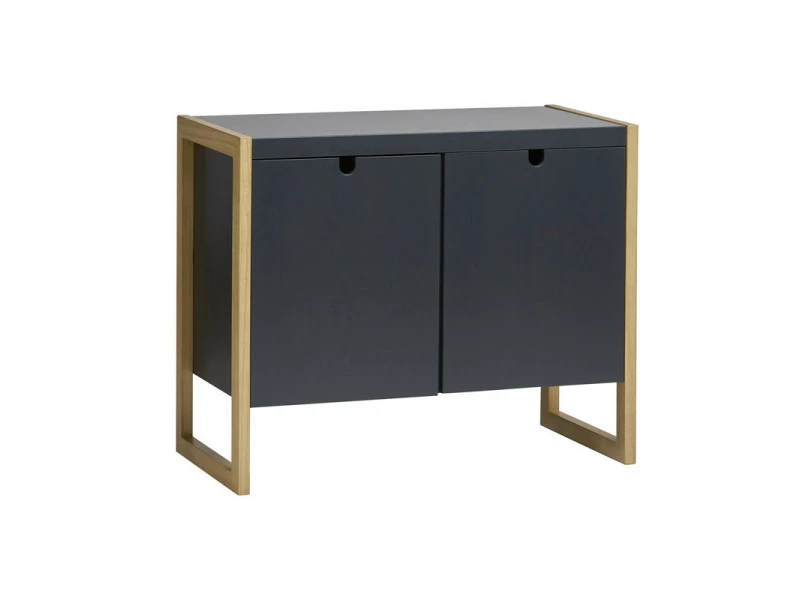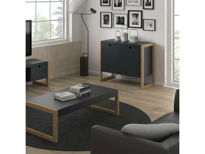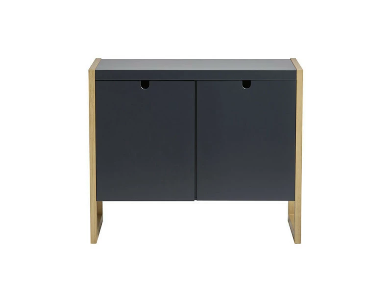 Modernisez votre entrée avec ce meuble d’entrée 2 portes au design minimaliste et proposant la mise en avant d’un corps teinte gris anthracite, délicatement mis en contraste par un piétement en bois de Pin teinte Chêne blond.