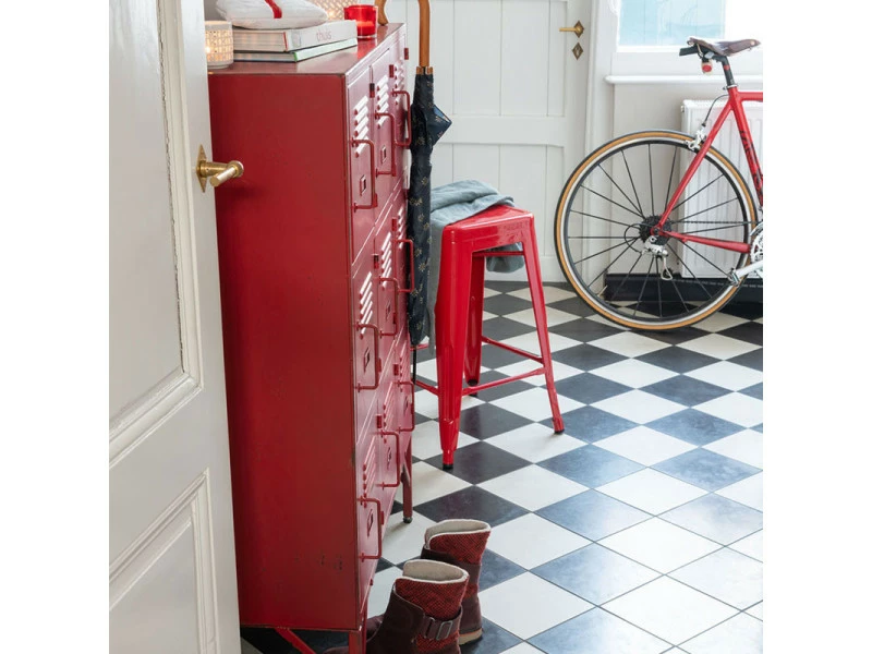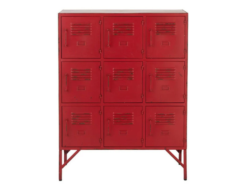 Totalement réalisé en métal laqué rouge et patiné, ce meuble de rangement bénéficie d’un charme certain et d’un code couleur qui ne manquera pas d’apporter de la luminosité dans votre pièce.