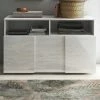 A l’aise dans une entrée mais aussi dans un salon ou même dans une salle à manger ce meuble très original met à votre disposition 9 espaces de rangement dissimulés par des portes au look exclusif.