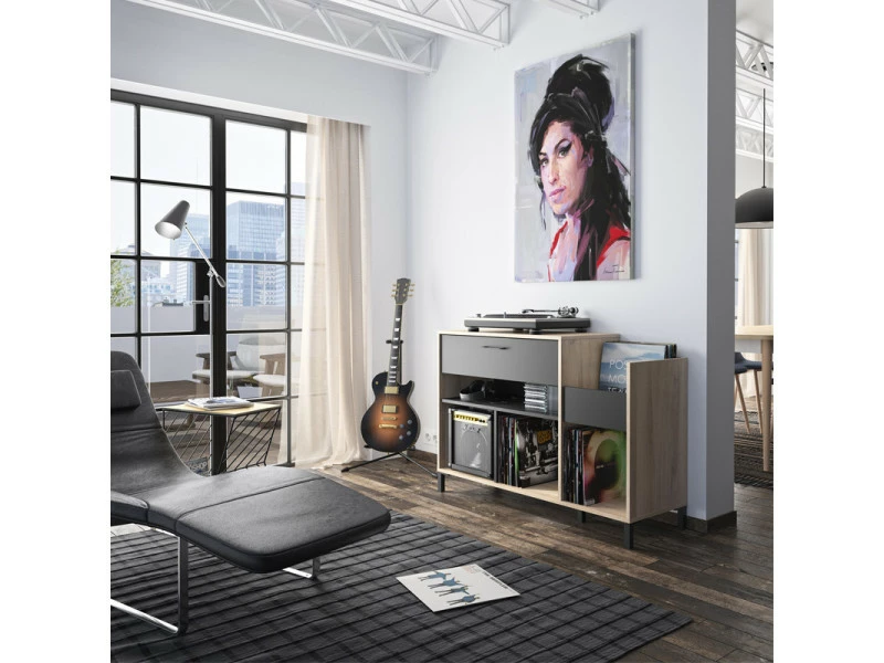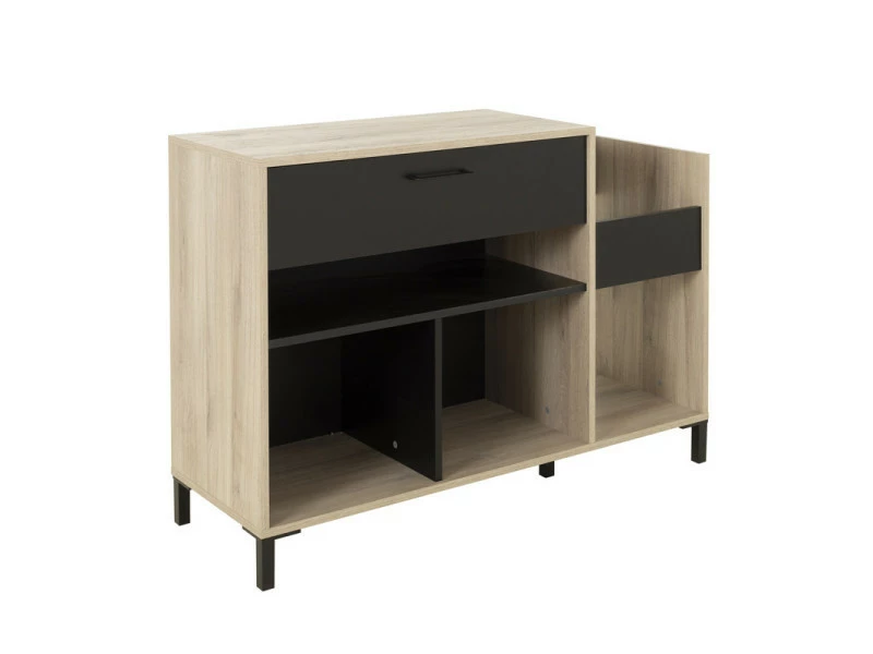 Dans un salon, une chambre, un bureau ou même une salle à manger ce meuble de complément offre de nombreux espaces de rangement qui combinent surfaces de pose et tiroir.