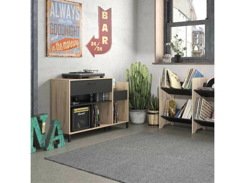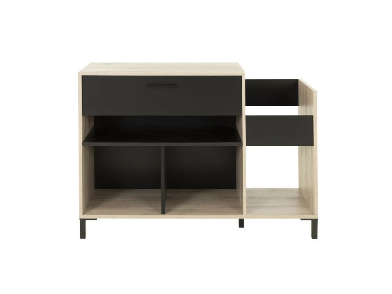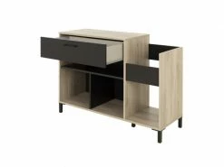 Vous apprécierez le mariage du revêtement Chêne clair au veinage plus vrai que nature et des éléments teinte noire qui promettent un rendu contemporain au goût du jour, le design original fait de ce meuble de rangement un atout dans toutes les pièces de la maison.