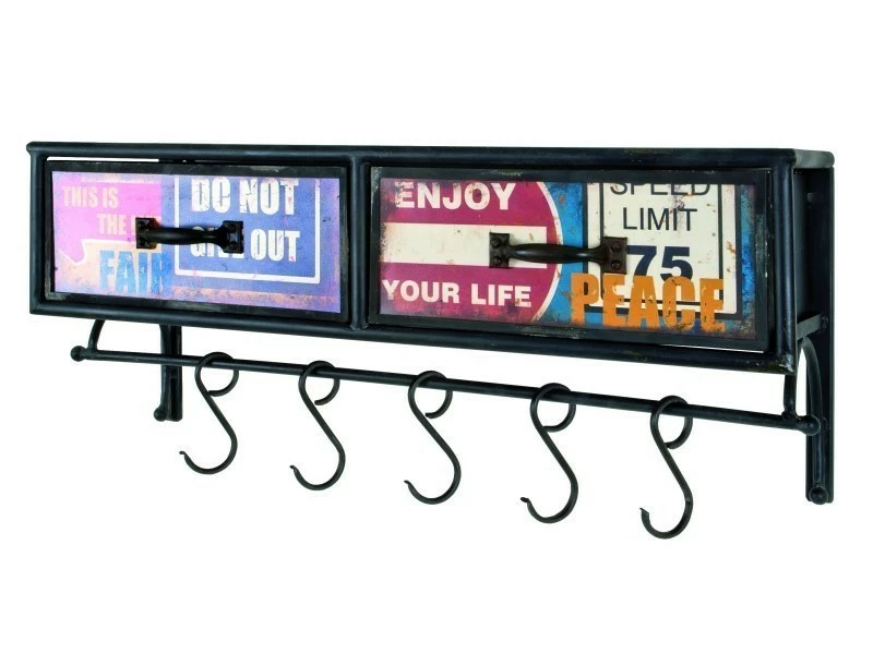 Moderne NUANCEMEUBLE garderobe murale Niamey vintage L77 x P24 x H34 cm en métal style vintage avec 2 tiroirs, tringle et crochets, monté 6.5kg