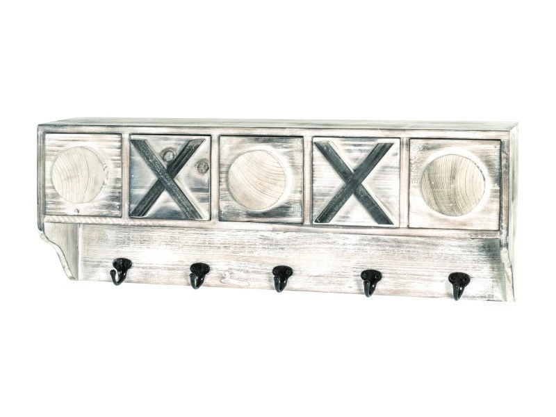 Moderne NUANCEMEUBLE garderobe murale Singapour vintage L65 x P15 x H25 cm en bois massif optique vintage, avec 5 crochets et 5 tirois, monté 3.8kg