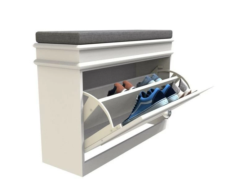 Meuble chaussure avec coussin rembourré, pour une assise confortable au moment de se chausser ou de se déchausser :