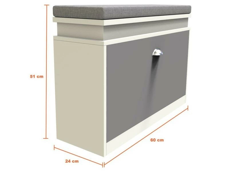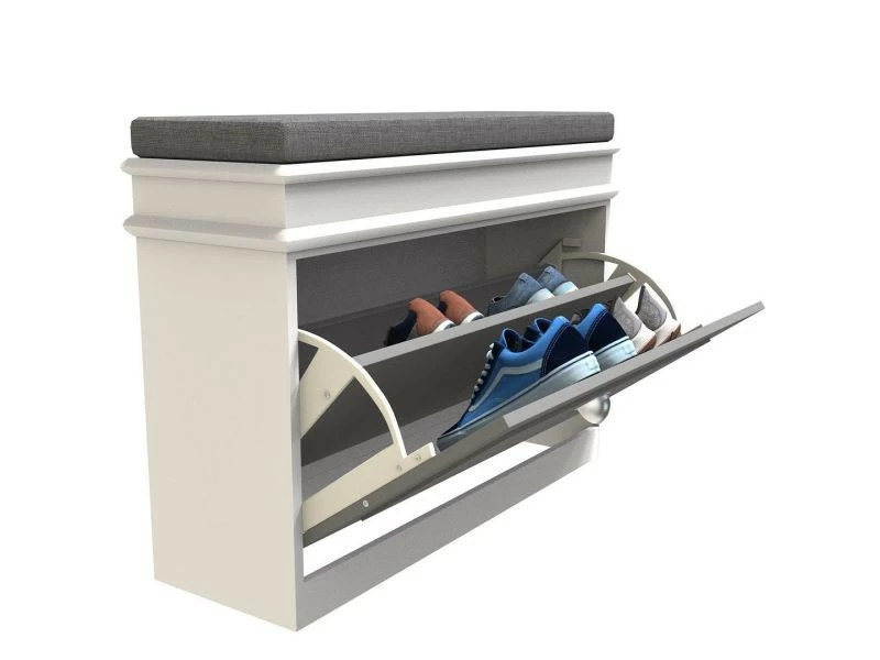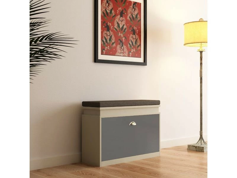 Meuble chaussure avec coussin rembourré, pour une assise confortable au moment de se chausser ou de se déchausser :
