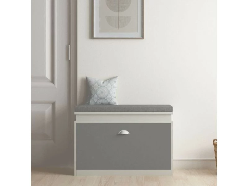 Mettez de l’ordre avec ce banc pour entrée. De conception simple, ce meuble à chaussures étroit est pratique et moderne. Le rangement des chaussures se fait sur 2 niveaux.