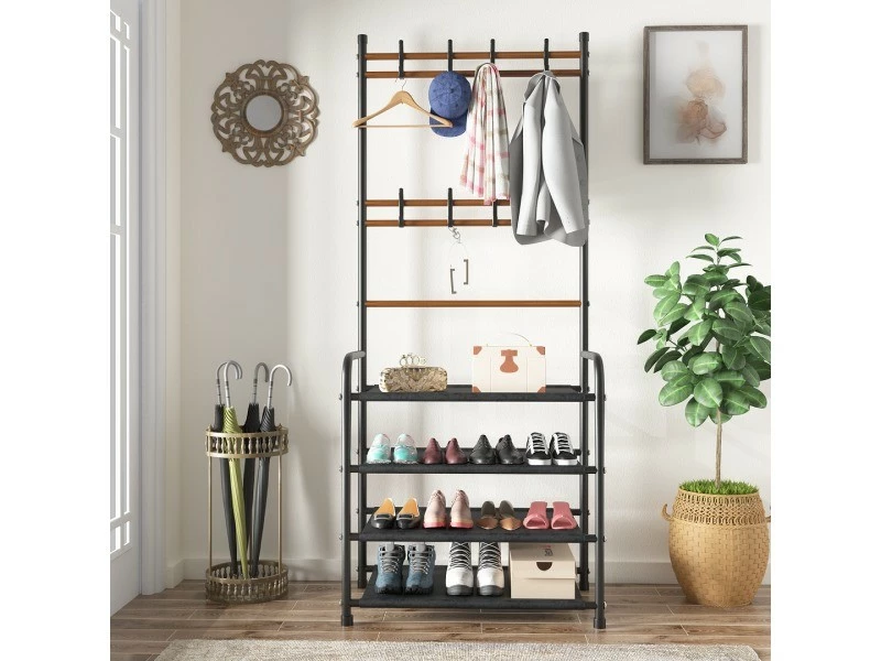 Avec 4 étagères pour les chaussures, 2 niveaux avec des crochets amovibles, 8 crochets patères, le meuble porte-manteau et chaussures offre un maximum d’espace de rangement pour toute la famille.