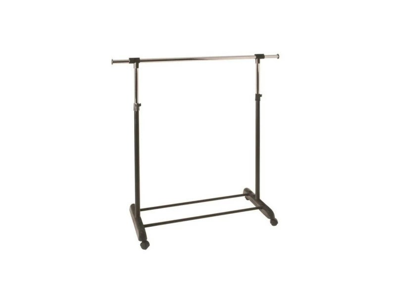 Portant tres pratique sur roulettes avec une grande tringle extensible de 95 a 145 cm et réglable en hauteur de 95 a 170 cm. Dimensions : 145x44x173cm.