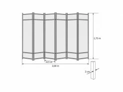 Description du produit. Ce magnifique paravent séduit par son aspect de première classe. Le matériel de qualité crée une ambiance naturelle. Comme un produit naturel stable et de longue durée, le bambou améliore n´importe quel espace de vie. La disposition harmonieuse et individuelle du hauban est subtile et très belle. Le produit n´a pas seulement un aspect original, mais a également un effet fonctionnel séparant la pièce et lespace intime. Le paravent peut être placé en fonction de vos besoins individuels. Si vous n´en avez pas besoin, il peut être rabattu facilement.. Détails. paravent en bois avec bambou. 6-panneaux Paravent. pliant. charnière bidirectionnelle. Matériau et couleur. matériel: bois en brun foncé. matériel intérieur: bambou de couleur lumineuse naturelle. Dimensions. Dimensions (L, H): 264 cm x 175 cm. 44 cm par panneaux. Livraison en France Métropolitaine Uniquement Hors Corse. Délai de livraison environ 15 jours