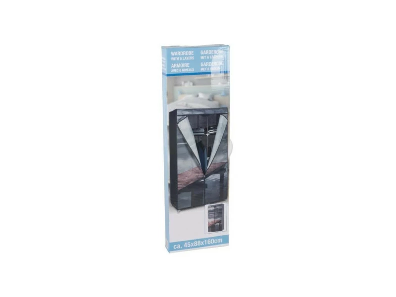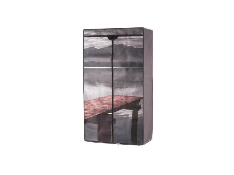 Penderie souple 88x45x160cm – 6 niveaux – dĂ©cor ‘Lake’ – structure mĂ©tal avec tube 13×0,28mm. Housse intissĂ© 80gr