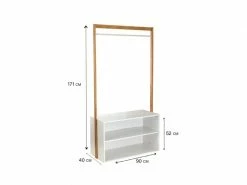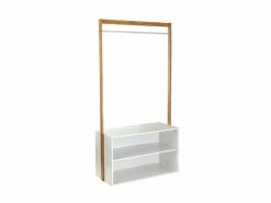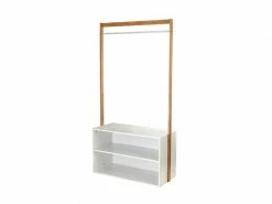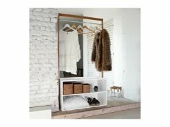 - Ce portant vêtement apportera à votre entrée une touche naturelle très tendance. Il vous permettra de suspendre manteaux, sacs et foulard. Il dispose aussi de deux rangements sur lesquelles vous pourrez poser vos chaussures par exemple.