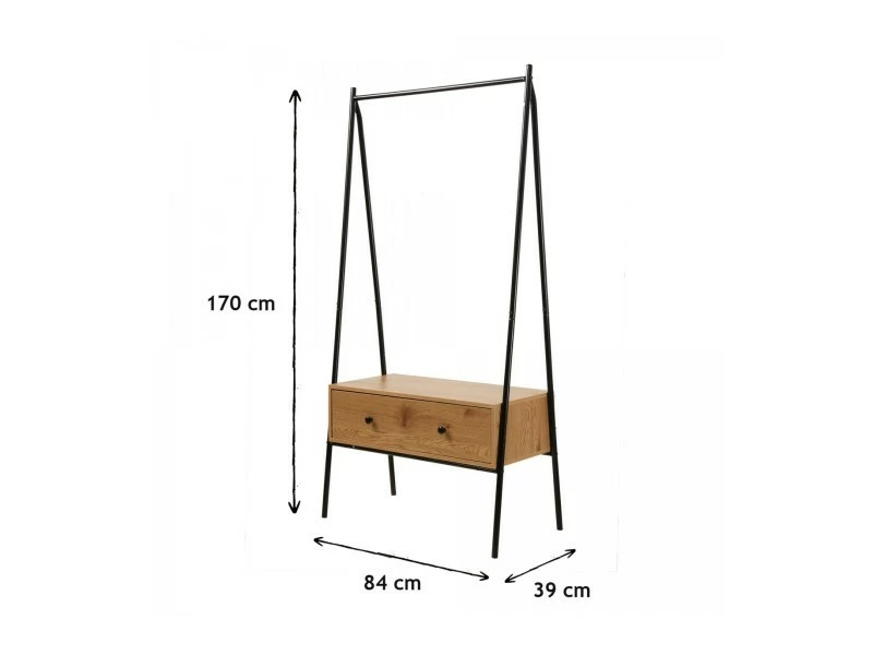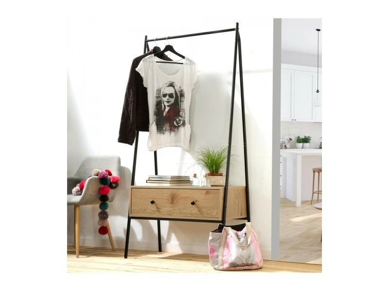 - Découvrez notre Penderie en métal Noir avec 1 Tiroir décor Chêne H170 cm, un meuble simple et chic pour habiller une entrée, une chambre ou un dressing !