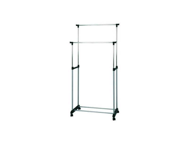 Portant Sama avec 2 barres chromĂ© – Acier et plastique – 80x42x96 cm – 165 cm – Noir et aluminium – RĂ©glable en hauteur