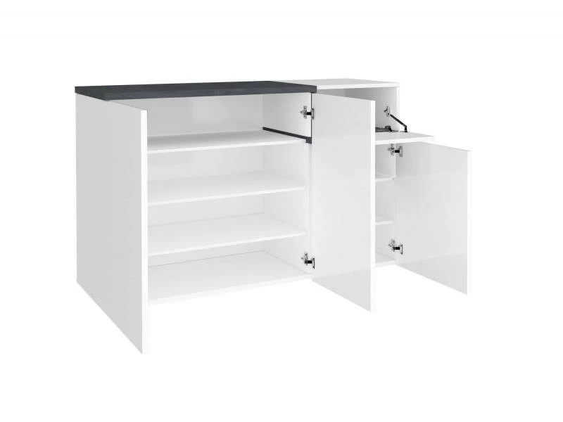 MODERN SHOE RACK: Meuble à chaussures moderne à quatre portes, dont deux rabattables, la structure est blanc brillant avec des détails gris ardoise – Fonctionnel et innovant, parfait pour meubler des espaces nécessitant de l’espace avec un seul modèle élégant et fonctionnel. STRUCTURE ET UTILISATION: Solution parfaite pratique et élégante si elle est placée dans un environnement moderne, elle est très spacieuse grâce à la structure à quatre portes battantes et une petite porte à rabat, c’est une excellente solution peu encombrante – À l’intérieur, les portes ont un total de sept étagères confortables où insérer vos chaussures confortablement – Portes équipées de fermetures à glissière en métal solides et durables. PRATIQUE ET INNOVANT: Son design moderne et élégant rend ce meuble à chaussures avec portes parfait pour être placé dans un environnement moderne et lumineux: c’est le produit idéal pour ceux qui recherchent une armoire fonctionnelle peu encombrante pour leur maison – Couleur blanche combinée à la couleur le gris ardoise est très moderne et en même temps s’adapte facilement à tout type d’environnement. 100% MADE IN ITALY: La production 100% italienne garantit fiabilité, résistance, confort et durabilité dans le temps l’attention portée aux processus de production, le choix des matières premières de qualité et le souci du détail font de ce produit une fabrication noble. CARACTÉRISTIQUES TECHNIQUES : Fabriqué entièrement en stratifié, il résiste aux chocs et aux rayures, et est durable dans le temps – Nettoyage rapide et facile grâce à la matière qui le compose – Livré démonté avec kit et livret d’instructions de montage – Soin et attention particulière à l’emballage , résistant et adapté au transport – Dimensions en cm : 120x40h80