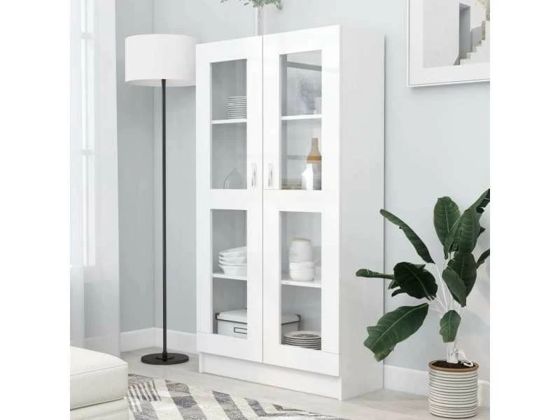 Icaverne – Bibliothèques selection Armoire Ă vitrine Blanc 82,5×30,5×150 cm AgglomĂ©rĂ© «Â