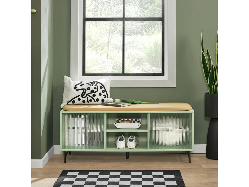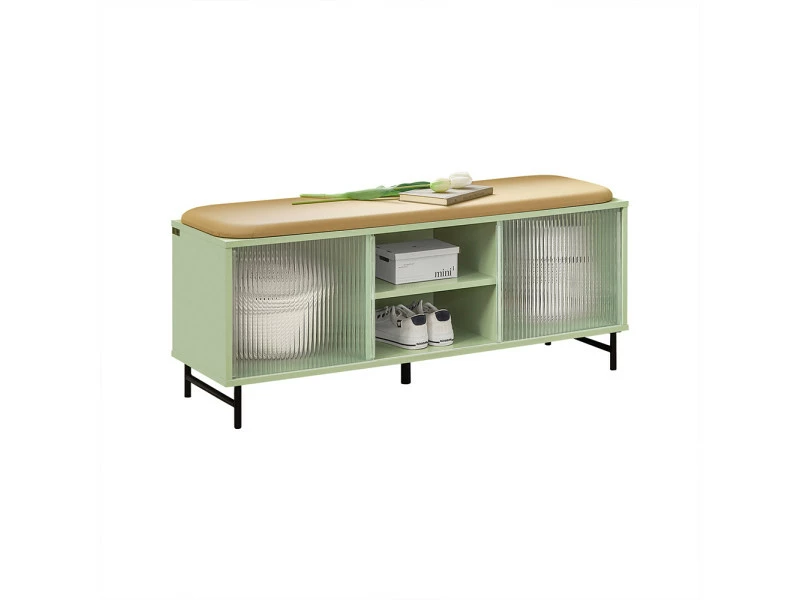 « SoBuy FSR115-GR banc à chaussures avec 4 Compartiments et 2 Portes Coulissantes en Verre